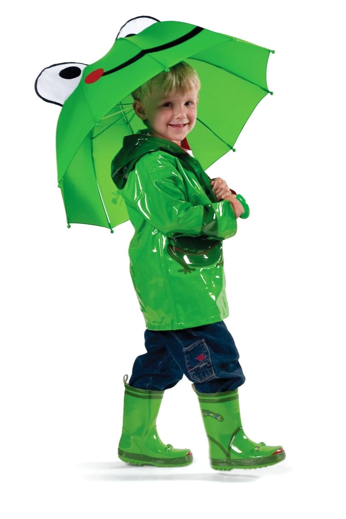Kidorable Kurbağa yağmur botu ve yağmur çizmesi ile şemsiyeyi tamamlayabilirsiniz.