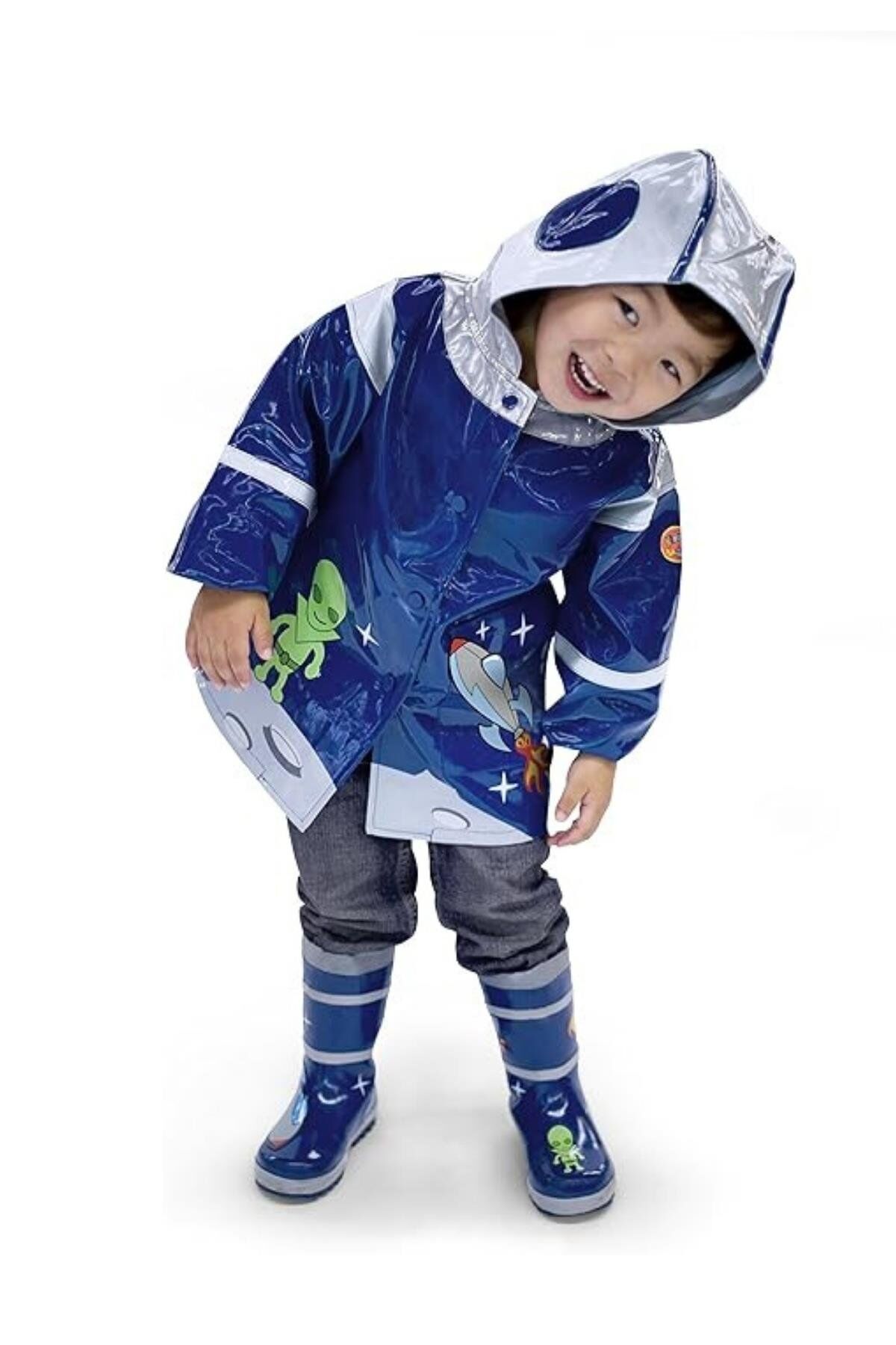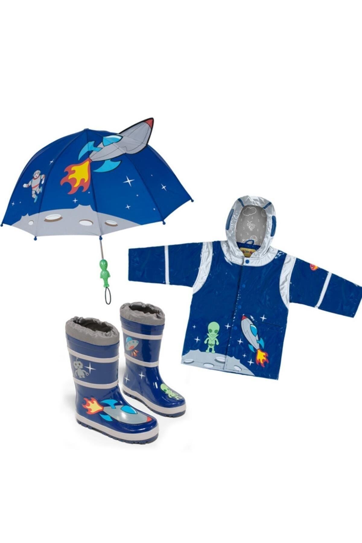 - Kidorable Uzay Kahramanı yağmur çizmesi ve şemsiyesi ile yağmurluğu tamamlayabilirsiniz.