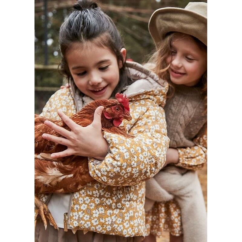 Mayoral Kız Çocuk Kapüşonlu Çiçek Desenli Şişme Çift Taraflı Mont