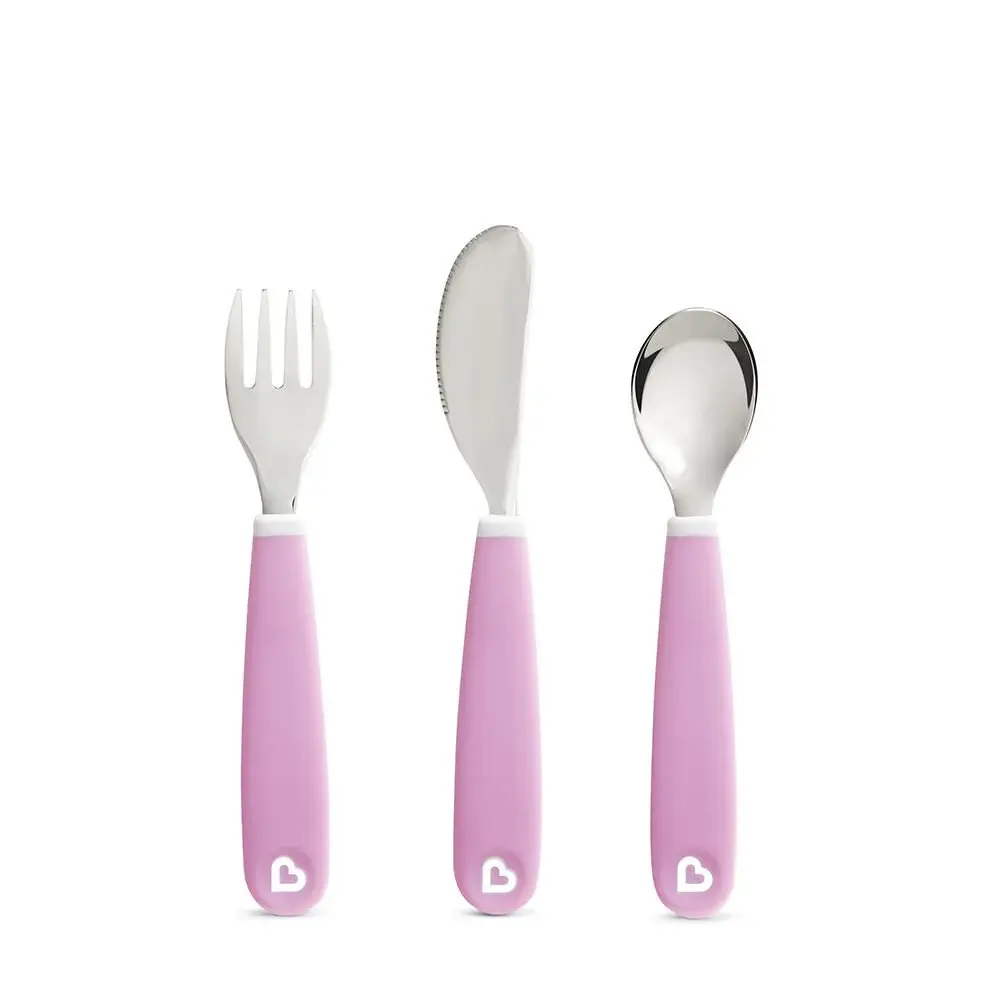 Munchkin 3’lü Sıçramayı Önleyici Çocuk Çatal, Kaşık, Bıçak Seti | Mor | 18 Ay+ | BPA İçermez