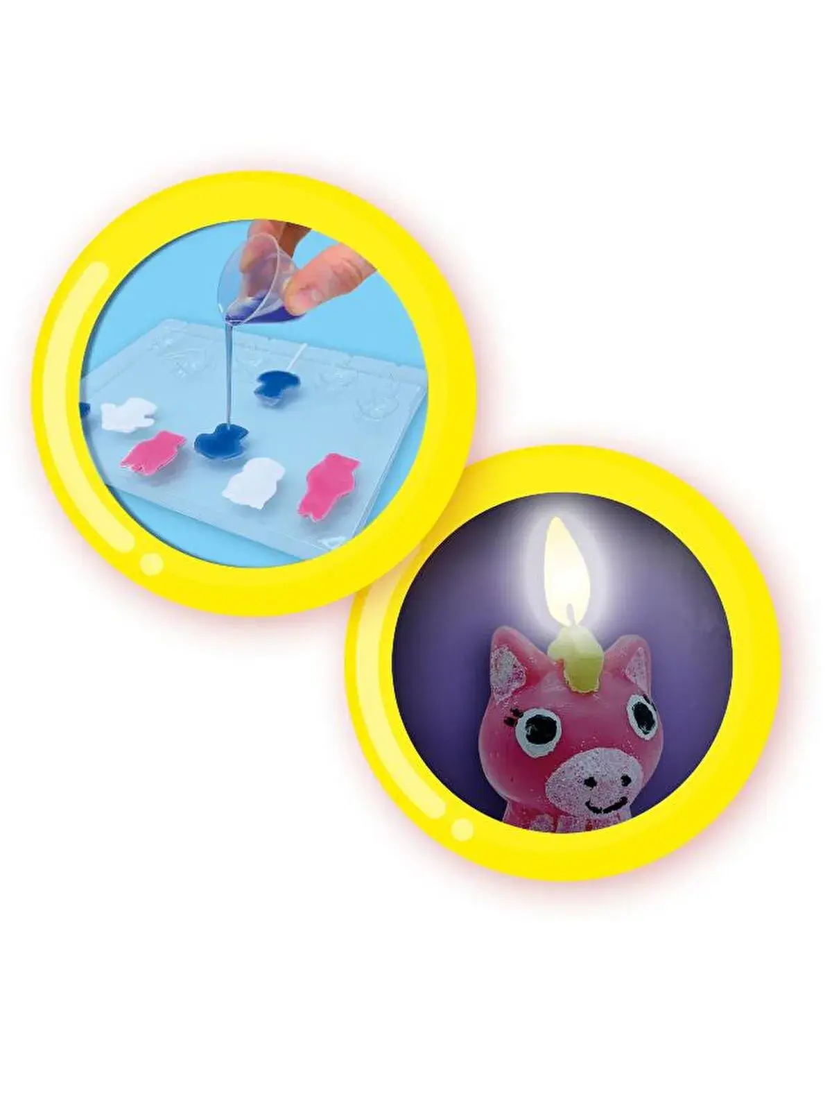 - 3 farklı renkteki kokulu mumları mikrodalga fırında eritip 6 neşeli hayvan kalıbına dökerek kendi mumlarınızı yapabileceksiniz. Kutu içeriğinden ölçü kabı ve mumlar için fitil de çıkmaktadır.
