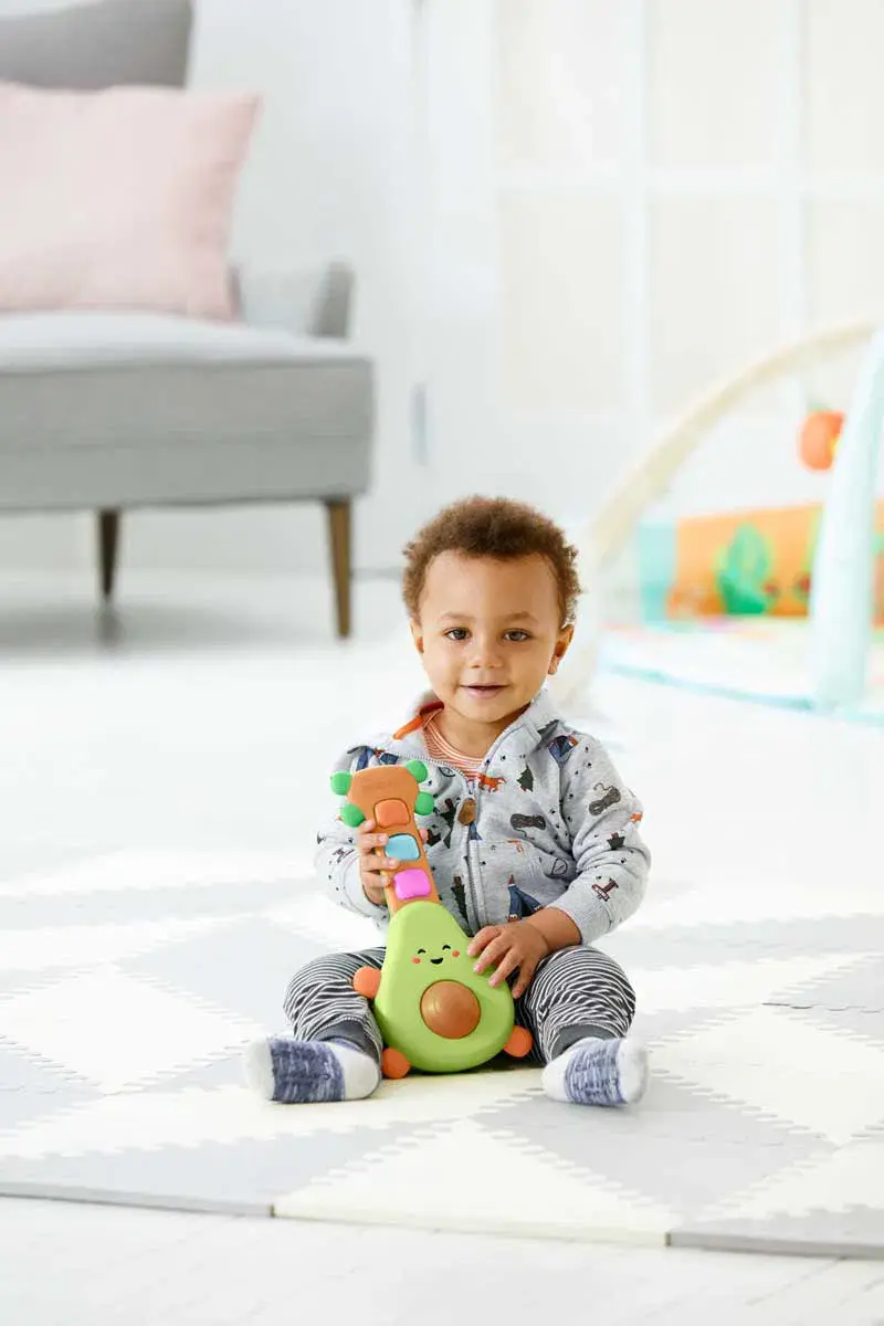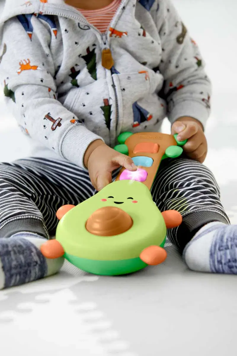 Bu sevimli avokado gitar, tıngırdayan riffler, eğlenceli melodiler ve daha fazlasıyla minik müzisyenlere ilham veriyor! Küçük eller tarafından kolaylıkla tutulabilir tasarıma sahip avokadonun "göbeğini" döndürün veya ışıklı düğmelere basın.Özellikleri: