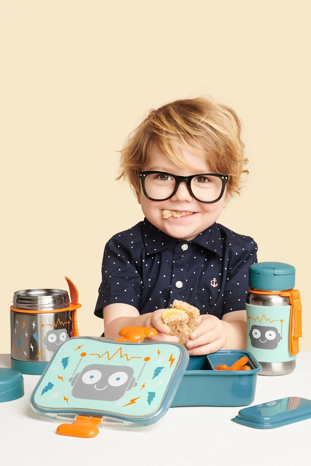 Öğle yemeğini etkileyici bir tarzda paketleyin! Çocuklar, okula veya parkta pikniğe yemek götürmek için kullanabilecekleri küçük kişiliklerin parıldamasını sağlayan havalı tasarımlara sahip bu "büyük çocuk" setine bayılacaklar. Bağımsız yemeyi teşvik etmek için harika olan 4 parçalı set, daha küçük bir atıştırmalık kabı ve öğle yemeği kutusunun içine tam olarak uyan bir kapak içerir. Sevimli klipsler, miniklerin tek başına açmasını kolaylaştırır. Spark Style koleksiyonumuzun tamamına bugün göz atın!Özellikleri: