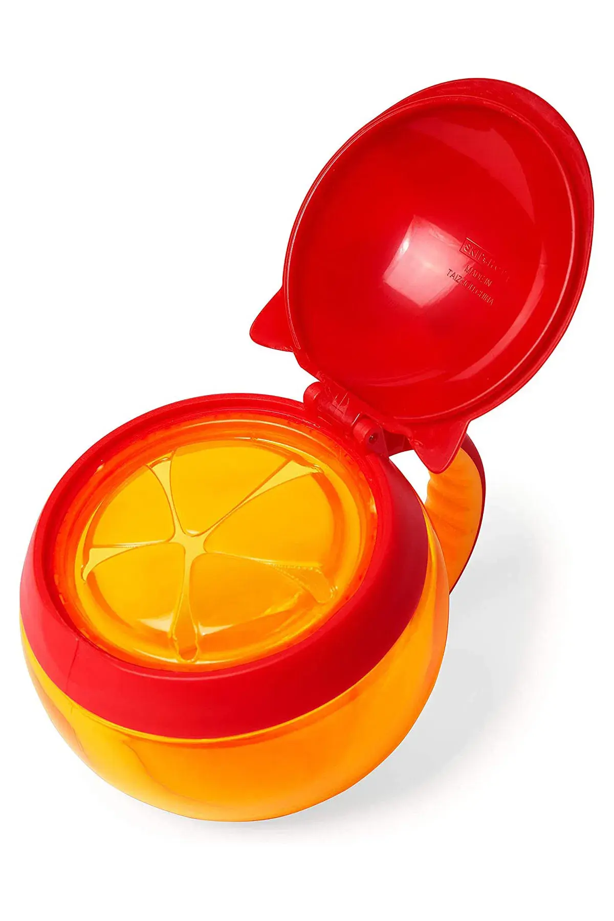 Çocuğunuzun atıştırmalıklarını taşımak için mükemmel olan dökülmeyi önleyen tasarıma sahip bardağımız, tazelik için esnek bir açıklığa ve çıtçıtlı bir kapağa sahiptir. Kolay kavranan sapı, küçük eller için en ideal boyuttadır ve bağımsız olarak atıştırmayı teşvik eder! Esnek iç ağız, kabınız devrilse bile atıştırmalıkların dışarı dökülmesini engeller. İki kapakla daha az dağınıklık olur ve annenin çantası kırıntısız kalır!Özellikleri: